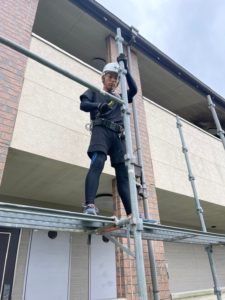 アパート塗装工事の足場組立です💪