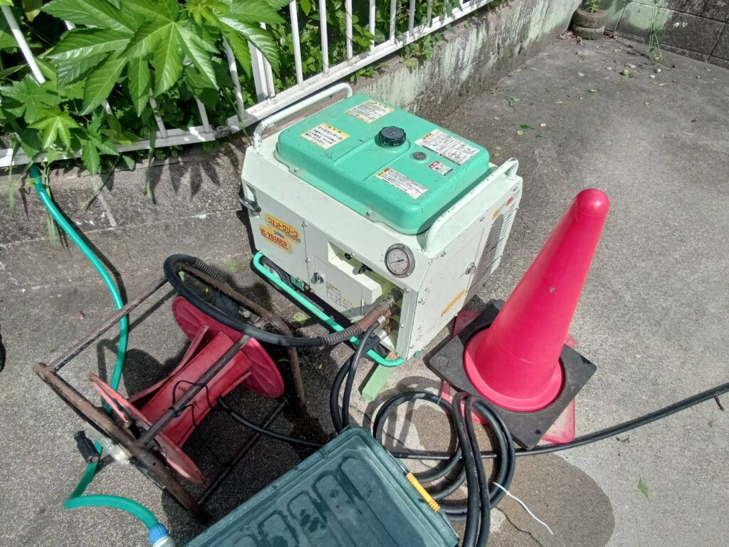 洗浄の強さは最大200キロ圧のものを職人さんが現場で圧力調整しながら使用していきます。