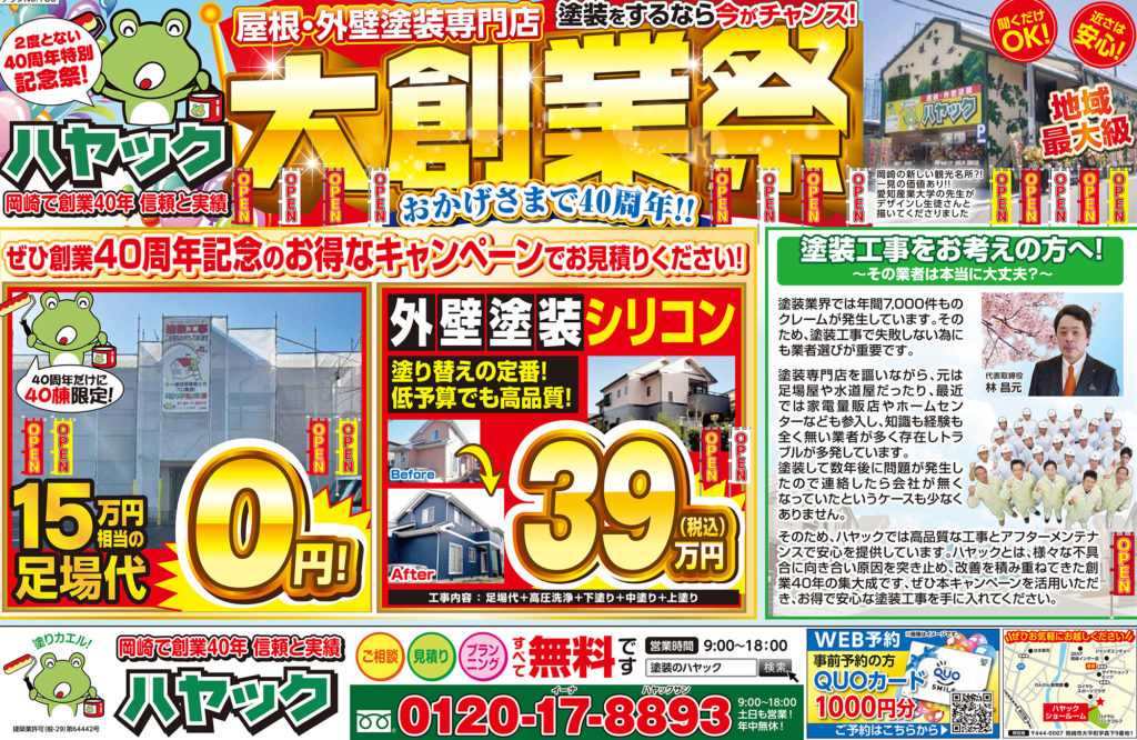 ハヤック岡崎ショールームにて40周年記念大創業祭を開催いたします!