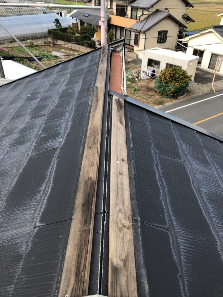 屋根を見たら、板金が無い部分がありました。